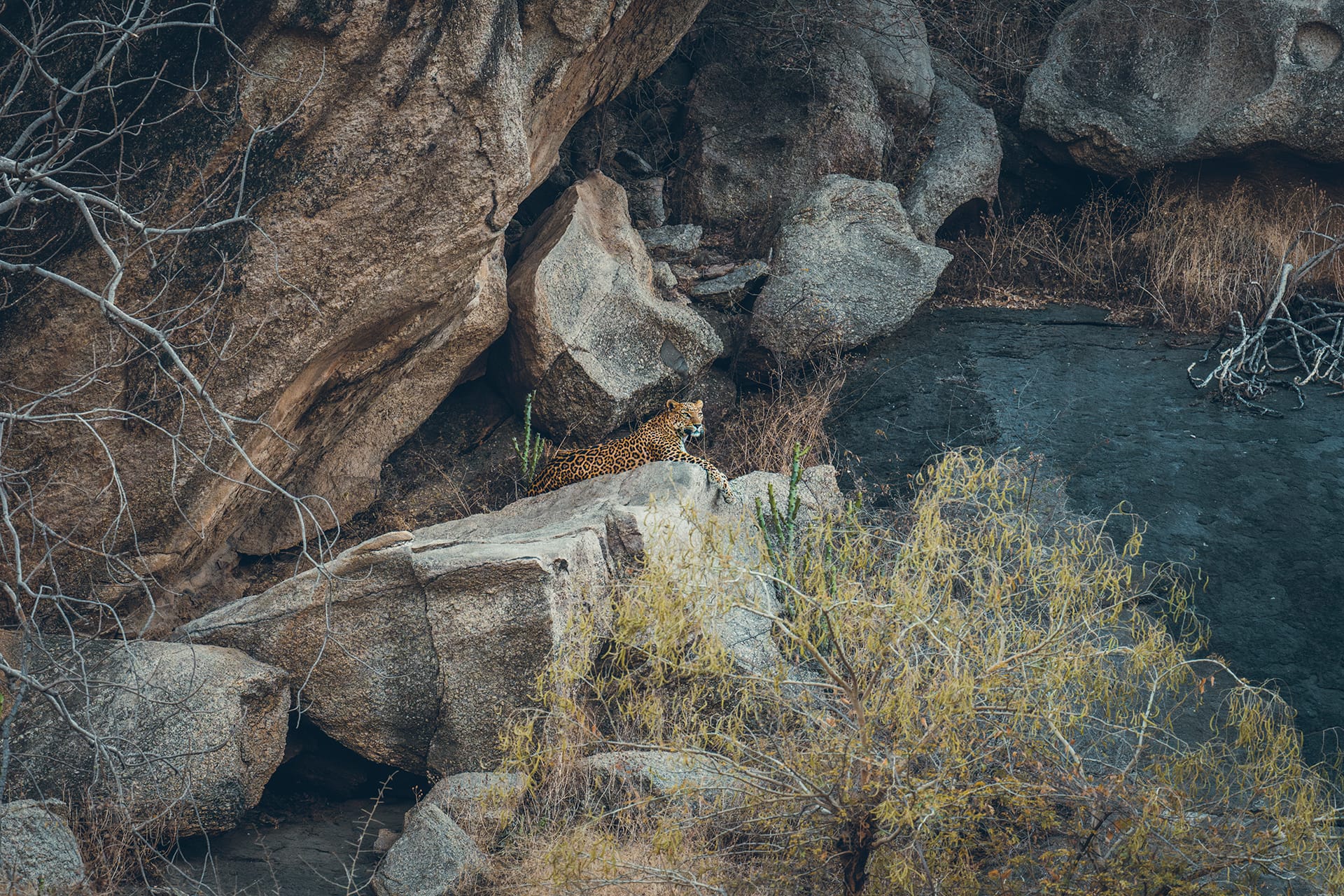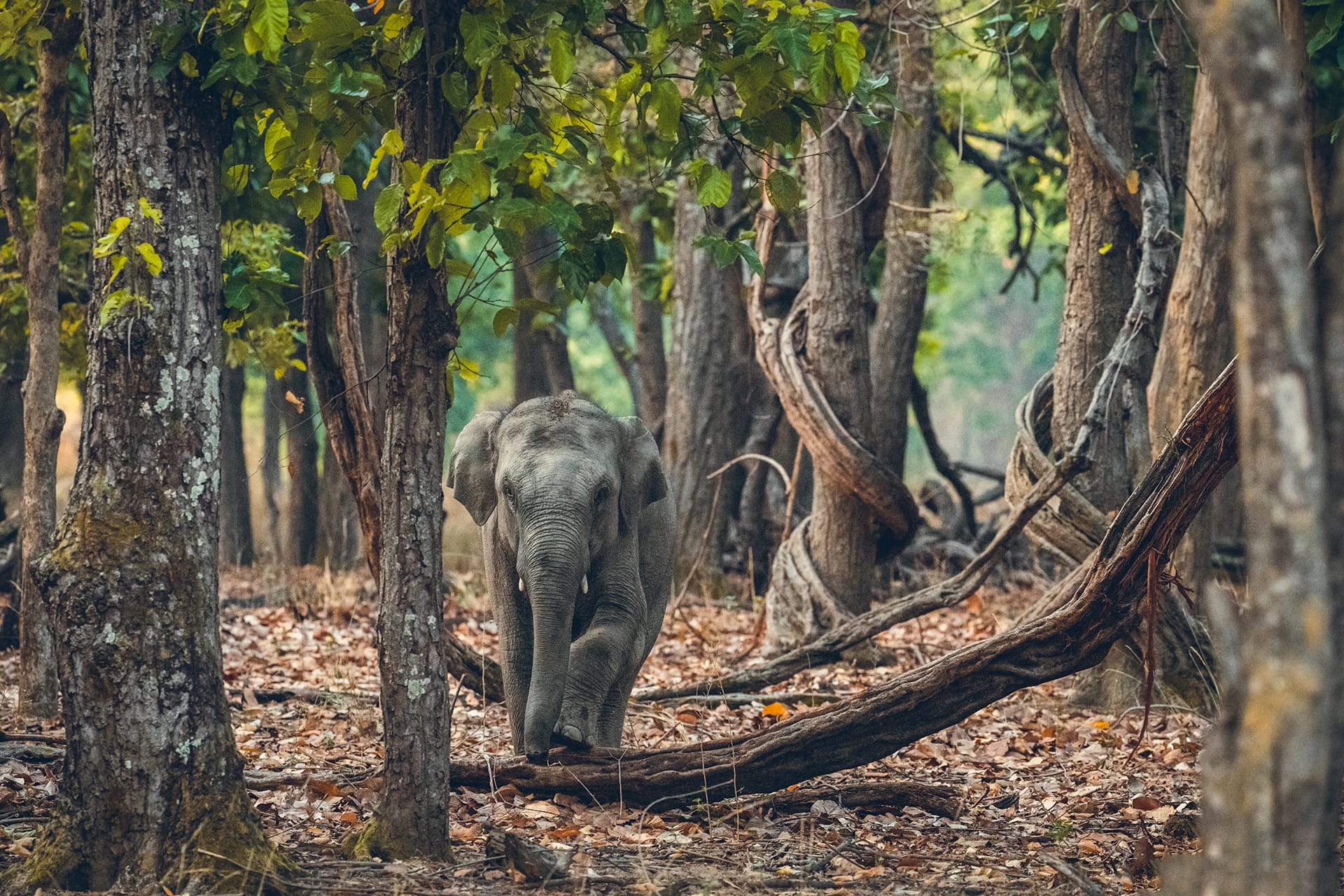 Les paysages préservés de Satpura proposent une rencontre intime avec la jungle indienne. Forêts épaisses, reliefs vallonnés et points d’eau composent un décor propice à une approche fine de la faune. Les safaris, variés et complémentaires, permettent d’aborder le territoire sous plusieurs angles et d’en saisir toute la richesse. Le tigre du Bengale y évolue avec discrétion, aux côtés notamment du léopard, de l’ours lippu, des chiens sauvages d’Asie ou encore le plus petit félin du monde, le chat rubigineux. Entourés de guides naturalistes expérimentés et d’Émilie Favier, photographe et accompagnante du voyage, vous progressez lentement dans la forêt, attentifs au moindre indice.